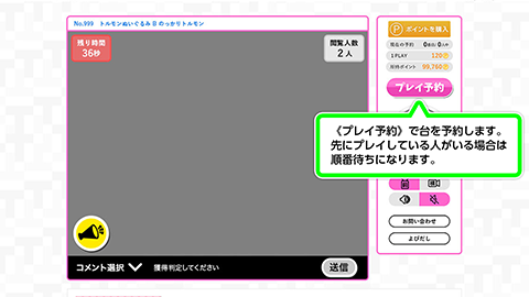 他プレイヤーがプレイ中の場合は「プレイ予約」を押すと「順番待ち状態」になります。